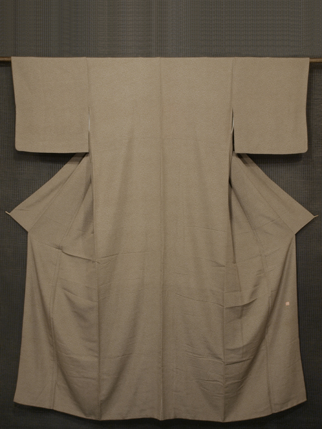 煎茶色の地に、白色で「無病息災開運隆盛」という縁起の良い四字熟語が染めあらわされています。 「いわれ小紋」とは、角通しや行儀、鮫など、武士の裃に用いられた江戸小紋の柄とは異なり、 吉祥文様や四字熟語などを組み合わせて判じ絵のように意匠化した「江戸小紋」の一種です。 一見すると幾何学文様にみえる「無病息災開運隆盛」の意匠からは 江戸っ子の粋な遊び心が感じられます。 ※八掛けは香染(こうぞめ)色の無地です。 ●お薦めのシーン : 観劇や美術鑑賞、茶事、気さくなパーティ、ご友人とのお食事やお買いもの、お稽古、近所にお散歩など ●お薦めの季節 : 春秋冬 ※色名は「日本の伝統色 和色大辞典」を参考にしています。 |