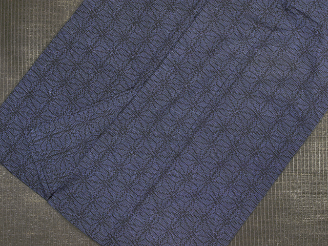 濃藍色の地に深縹色(こきはなだいろ)で亀甲に麻の葉の絣文様が織りあらわされています。 緻密な亀甲絣で表現された麻の葉の意匠からは、シンプルだからこそ 職人の技がうかがえ、高級感が感じられます。 濃藍色の地は、さまざまな帯を美しく引き立てていただけそうで、 長く飽きずにさまざまな場面で重宝いただけるでしょう。 ●お薦めのシーン : 観劇や美術鑑賞、気さくなパーティ、ご友人とのお食事やお買いもの、お稽古、近所にお散歩など ●お薦めの季節 : 5月上旬~6月下旬、 9月上旬~11月上旬 ※色名は「日本の伝統色 和色大辞典」を参考にしています。 |