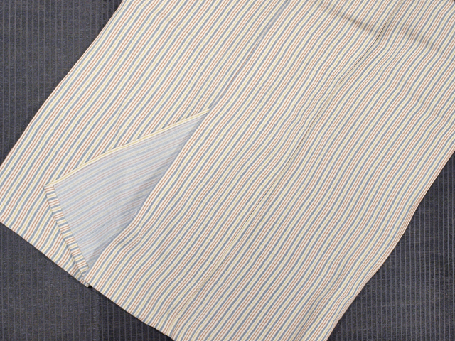 | 詳細 | さらりとした風合いをもつシボのある縮緬地が用いられた小紋の単衣です。 絹鼠色のに、金通じ文様が型染めであらわさています。 藍鼠色、菜の花色、珊瑚朱色といった涼やかで明るい色合いであらわされた金通し文様からは小粋な中にも女性らしいやさしい雰囲気が感じられます。 手描き染めのような不均一な線があじわい深く、シンプルですが奥行きが感じられます。 さまざまな帯がを粋に引き立てていただけそうなお色柄で、長くご愛用いただけるでしょう。 裏地は薄い青藤色で染められています。 ●お薦めのシーン : 観劇や美術鑑賞、ご友人とのお食事やお買いもの、お稽古、近所にお散歩など ●お薦めの季節 : 5月上旬~6月下旬、 9月上旬~11月上旬 ※色名は「日本の伝統色 和色大辞典」を参考にしています。 |