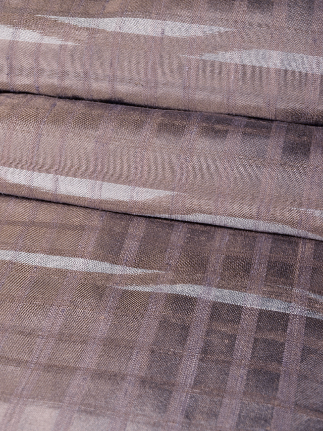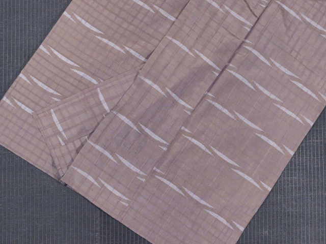 さらりとして張りのある上質な紬織りの単衣です。 淡い古代紫色で格子縞が織り出された胡桃染(くるみぞめ)色の地に、 白色で幾何学文様が織り出されています。 光の加減で浮き沈みする格子縞は浮き織りのような立体感があり、奥行きがかんじられます。 鈍い光沢感のある紬の地風も高級感があり、所々に織り出された白色の幾何学文様も美しく、モダンな趣きです。 和モダンな趣きのお色柄はさまざまな帯を引き立てていただけそうで、長くご愛用いただけるでしょう。 ※色名は「日本の伝統色 和色大辞典」を参考にしています。 ●お薦めのシーン : 観劇や美術鑑賞、お稽古、ご友人とのお食事やお買いもの ●お薦めの季節 : 9月~11月下旬、4月~6月下旬ぐらい ※色名は「日本の伝統色 和色大辞典」を参考にしています。 |
